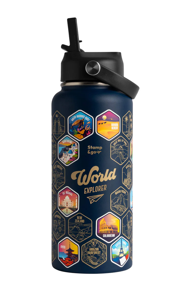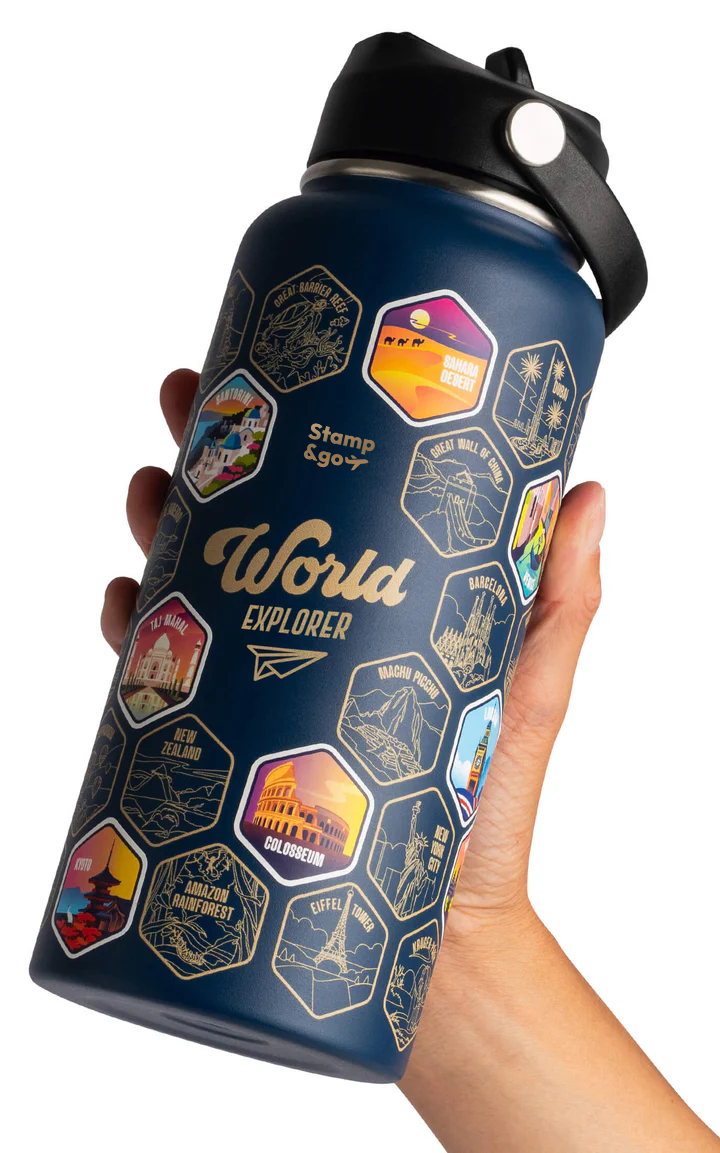 Stamp & Go World Exporer Su Matarası + Çıkartma Seti